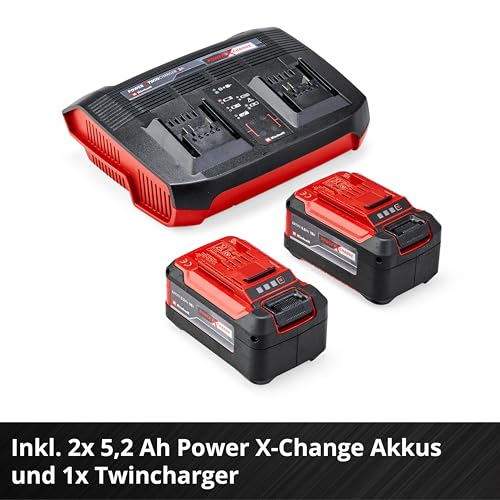 Die im Kit enthaltenen 5,2 Ah Akkus sind leistungsstark und ermöglichen es dem Mäher, auch auf großen Flächen ohne Zwischenladung auszukommen. Sie sind Teil des breiteren Power X-Change Akku-Systems, das in vielen Einhell-Geräten verwendet werden kann.
