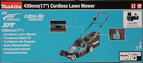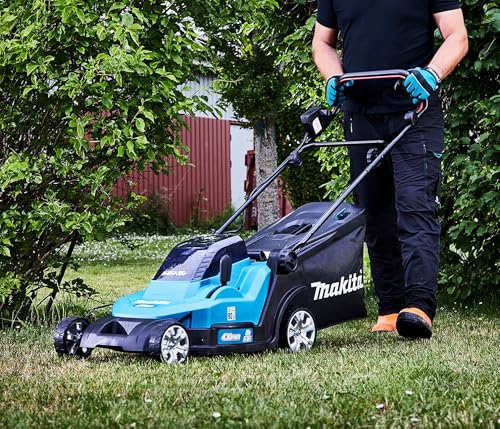 Der DLM432PT2 von Makita ist mit zwei leistungsstarken 18-V-Akkus ausgestattet. Diese Kombination sorgt für eine stabile und kraftvolle Leistung, selbst bei anspruchsvolleren Rasenflächen. Die parallele Nutzung der Akkus ermöglicht eine verlängerte Mähzeit, was besonders bei größeren Gärten von Vorteil ist.