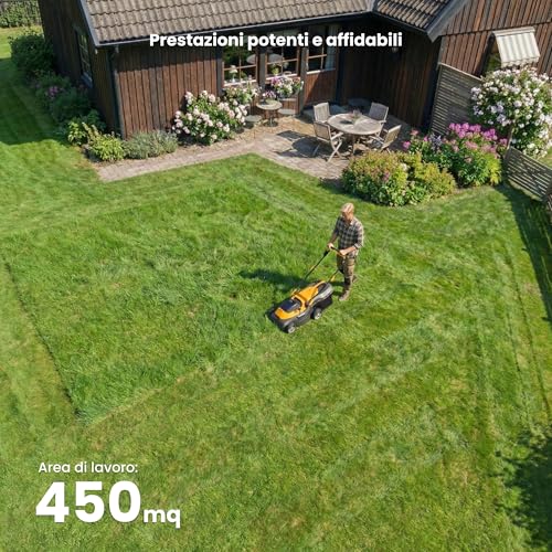 Darüber hinaus ist der Mäher mit zwei 20V 4Ah Akkus ausgestattet, die eine lange Betriebsdauer gewährleisten. So kannst du ohne Unterbrechung mähen, auch wenn dein Garten etwas größer ist.