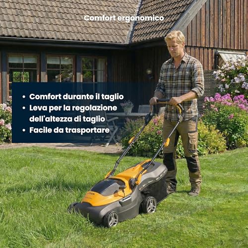 Besondere Aufmerksamkeit wurde auf die Benutzerfreundlichkeit gelegt. Mit einem Gewicht von nur 12 kg ist der Rasenmäher leicht zu manövrieren und eignet sich auch für weniger kräftige Nutzer. Der ergonomisch geformte Griff mit Soft-Grip-Oberfläche sorgt für maximalen Komfort beim Führen des Geräts.