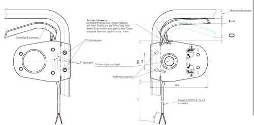 | Features | WICHTIGER HINWEIS: Prüfen Sie vor dem Kauf das dieser Schalter passt! Unser Schalter hat ein ZWEI ADRIGES Kabel, hat Ihr Rasenmäher Ein DREI ADRIGES Kabel, passt unser Schalter NICHT. Gehen Sie bitte immer davon aus das Anpassungen wie neue Löcher in Ihrem Rasenmäherrahmen gebohrt werden müssen!, Ersatzschalter für viele AKKU Rasenmäher in Erstausrüsterqualität. Made in EU. Nicht geeignet für Rasenmäher mit 230V Stromanschluß (Steckdose), Zum einschalten muss der seitliche gelbe Knopf betätigt werden und gleichzeitig der Handhebel wenige Zentimeter angezogen werden. Danach kann man den gelben Knopf loslassen. Sobald der schwarze Griff wieder losgelassen wird, schaltet der Schalter das Gerät ab., Montage an den Rasenmäherrahmen oder Griff möglich, Holmdurchmesser: 19 – 22mm, max. 4A/40V Schaltleistung, 1 phasig , 1 Schließer, Nur zum schalten von Steuerspannungen, nicht für Lastspannungen., Nicht geeignet für STIHL Rasenmäher, IP44 (Schutz gegen Staub und Spritzwasser), mit Kabel ca. 1,8m H05RN-F2x1,0 zum Anschluss des Gerätes |