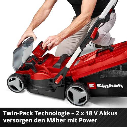 Einhell Akku-Rasenmäher RASARRO 36/34 Kit Power X-Change (36 V, 34 cm Schnittbreite, bis 300 m², 30L Fangkorb, 25-65 mm Schnitthöhe, inkl. 2x 3,0 Ah Akku + 2x Ladegerät)