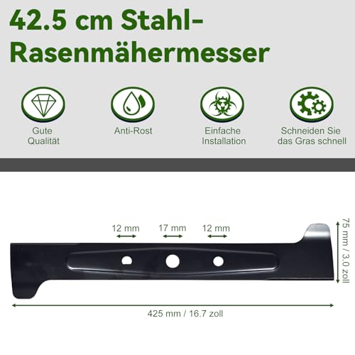 Ersatzmesser für Rasenmäher, Rasenmähermesser 42,5 cm, Rasenmäher Messer für Einhell Akku-Rasenmäher GE-CM 43 Li M & GE-CM 36/43 Li M, Ersatzmesser 430 mm