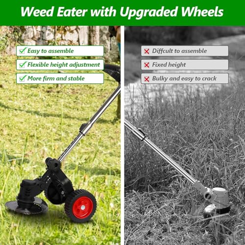 | Features | 🏡【Leistungsstarker Motor】Der leistungsstarke bürstenlose Motor verlängert die Batterielebensdauer und ist mit patentierten Zahnrädern mit 20.000 U/min ausgestattet, um die Kraft effizient zu übertragen und so eine lange Batterielebensdauer und Hochgeschwindigkeitsbetrieb zu gewährleisten., 🏡【Verstellbares Teleskopstangendesign】Ausgestattet mit einer verstellbaren Teleskopstange beträgt der Einstellbereich der Teleskopstange 92 cm bis 122 cm, sodass Sie sie an unterschiedliche Höhenanforderungen anpassen können. Da es kabellos und leicht ist, verheddert es sich nicht und ist sowohl für Männer als auch für Frauen einfach zu verwenden., 🏡【Sicher in der Anwendung】Der Grasschutz kann verhindern, dass Gras beim Jäten spritzt. Der kollisionssichere Stahlrahmen verhindert versehentliche Stöße und reduziert gleichzeitig den Klingenverschleiß. Doppelter Steuerschalter, die Unterseite muss gleichzeitig gedrückt werden, um beide Schalter zu aktivieren, was sicherer ist und versehentliches Berühren verhindert., 🏡【Geeignet für verschiedene Szenarien】Sägeblätter aus Edelstahl eignen sich zum Schneiden von Ästen und harten Büschen, Sägeblätter aus Edelstahl eignen sich für älteres und dickeres Gras und Sägeblätter aus Kunststoff eignen sich zum Schneiden von zartem Gras, Rasenschneiden usw. Sie können Ihre Bedürfnisse entsprechend Ihren Bedürfnissen auswählen., 🏡【Was Sie bekommen】1 x Elektro-Rasenmäher, 2 x Batterien, 1 x Netzteil, 1 x Kreissägeblatt, 2 x gerade Stahlblätter, 5 x Kunststoffblätter, 1 x Bedienungsanleitung und 1 x Führungsradabdeckung. Wir bieten einen freundlichen 24-Stunden-Kundendienst, um Sie von After-Sales-Problemen fernzuhalten. |