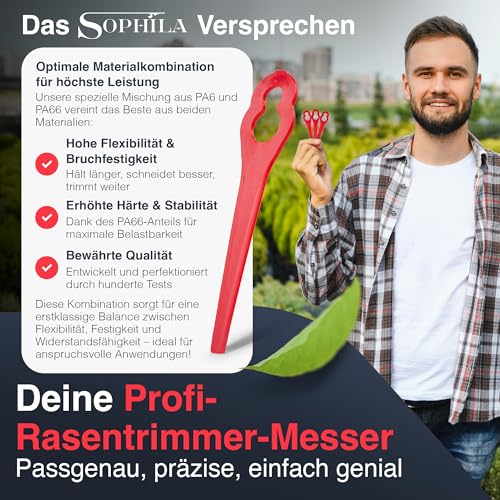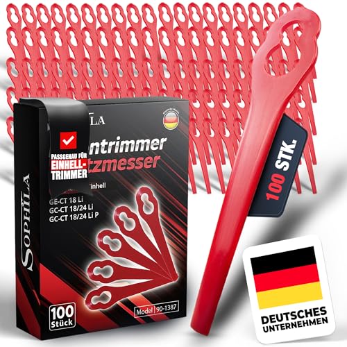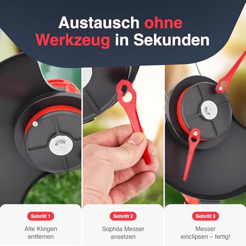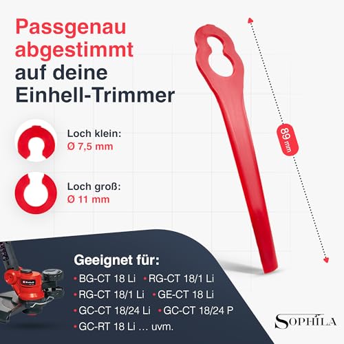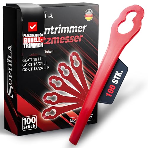 SOPHILA® 100x Ersatzmesser Für Einhell Rasentrimmer – Passend Für GE-CT 18 Li, GC-CT 18/24 Li – Rasentrimmer Messer Set Als Zubehör Für Einhell Rasentrimmer Freischneider