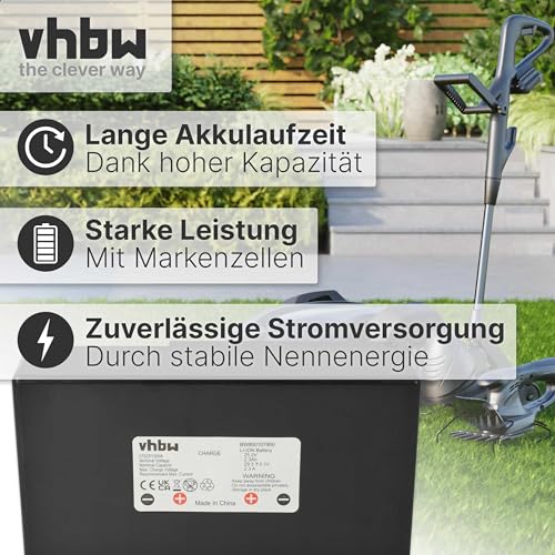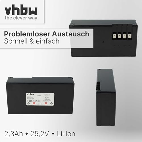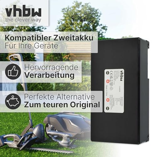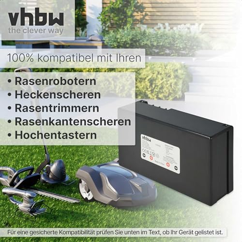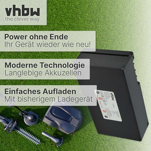 | Features | Leistungsfähiger Austausch-Akku für Rasenroboter Rasenmäher, Wiederaufladbar, Jede Akku-Zelle wird geprüft, Ersatz für 075Z01300A, 075Z61700A, 1126-1032-01, 1126-9121-01, 1126-9137-01, 531113, 531118, 531119, 6060BA0 Akku in Ihrem Gartengerät, Kompatibler Hochleistungsakku, Kapazität: 2300 mAh, Spannung: 25,2 Volt, Nennenergie: 57.96 Wh, Zell-Typ: Lithium-Ion, Selbstverständlich Einhaltung gesetzlicher Normen, Kurzschluss-, Überhitzungs- & Überspannungsschutz, Lieferumfang: 1x Ersatzakku (rechargeable), Ersatzteile, Wechselakkus & Zubehör von vhbw |
