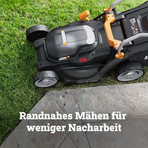 WORX WG733E Akku-Rasenmäher 20V, 33cm Schnittbreite, 35L Grasfangkorb (leistungsstarker Brushless-Motor, 6 Schnitthöheneinstellungen (25-75mm), Intellicut Technologie, inkl. 4Ah Akku & Ladegerät)