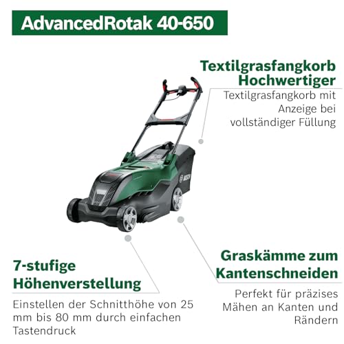 Bosch leistungsstarker Rasenmäher AdvancedRotak 40-650 (zum Rasenmähen, 1700 W Motorleistung, Schnittbreite: 40 cm)