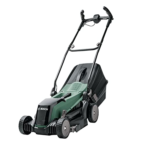 | Features | Die Easy Gartengeräte von Bosch – für kleine und mittelgroße Gärten, Einfaches Einstellen der Schnitthöhe: Einstellen der Graslänge zwischen 25 und 70 mm mit dem 5-stufigen Hebel am Griff, Bequemes Arbeiten: Gesunde Arbeitsposition für jeden Benutzer durch ergonomische ErgoFlex-Griffe, Einfach zu verstauen: Einfach Griffe einklappen und auf den Rasenmäher legen, Sauberes Mähen: Rasenkämme sorgen für saubere Kanten und exakte Ergebnisse an Einfahrten, Zäunen und Wänden, Lieferumfang: EasyRotak 36-550 |