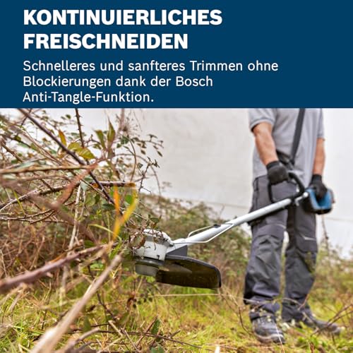Erlebe präzises Schneiden mit dem Bosch Professional 18V Akku-Freischneider. Sein bürstenloser Motor und die Anti-Tangle-Funktion sorgen für müheloses Arbeiten. Mit leichtem Design, Schultergurt und Freischneidermesser-Set ist er ideal für deinen Garten.