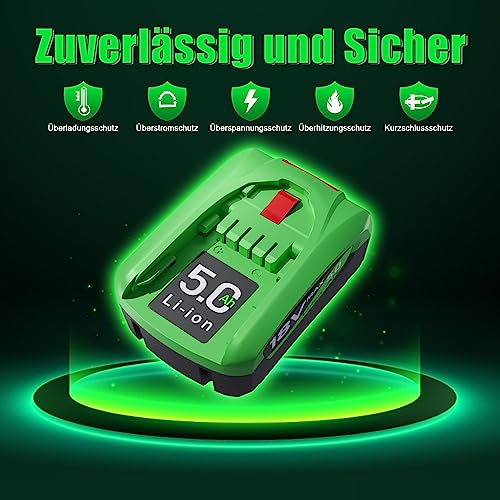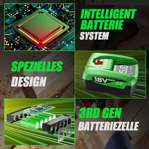 - Kapazität: 18 Volt und 5000mAh, verlängerte Laufzeit
