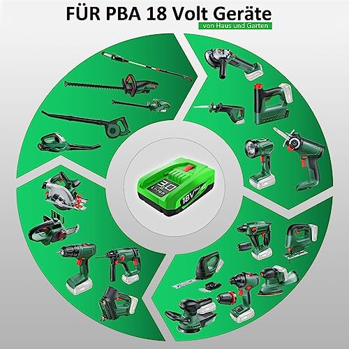 - Kompatibel mit Bosch 18V-Geräten wie Heckenscheren, Akkuschraubern, und Rasenmähern