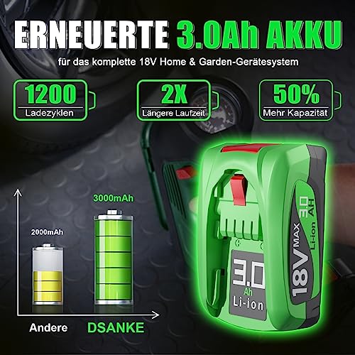 Der DSANKE Ersatzakku für Bosch 18V Systeme ist eine vielversprechende Wahl für alle, die nach einer zuverlässigen Stromquelle für ihre Gartengeräte und Elektrowerkzeuge suchen. Mit seiner robusten Kapazität und der Kompatibilität mit einer Vielzahl von Bosch 18V Geräten verspricht dieser Akku eine beeindruckende Laufzeit und Leistungsfähigkeit.