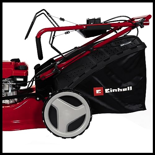Einhell Benzin-Rasenmäher GC-PM 51/3 S HW-E Li (2.7 kW, 1 Zylinder 4-Takt-Motor, Highwheeler, Startseilzug am Führungsholm, Elektro-Start-Funktion, inkl. 2, 0 Ah Akku und Ladegerät)