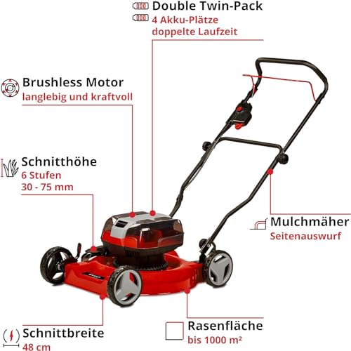 Einhell Akku-Rasenmäher GE-CM 36/48 Li M-Solo Power X-Change (36 V, 48 cm Schnittbreite, bis 1000 m², Brushless, Mulchrasenmäher, 30-75 mm Schnitthöhe, ohne Akku)