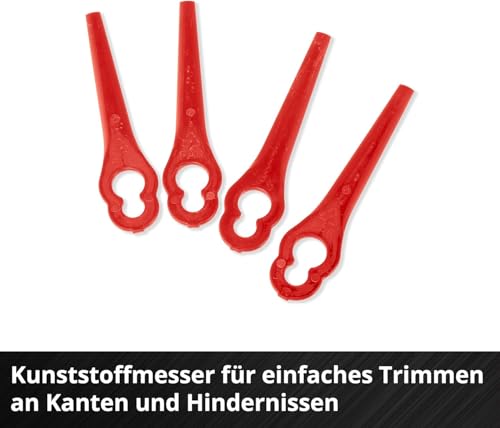 Der Rasentrimmer hat eine Schnittbreite von 24 cm, was für präzise Schnitte an Rasenkanten und schwer erreichbaren Stellen sorgt. Die scharfen Kunststoffmesser sind robust und schneiden Gras sauber ab, ohne es zu zerfetzen.