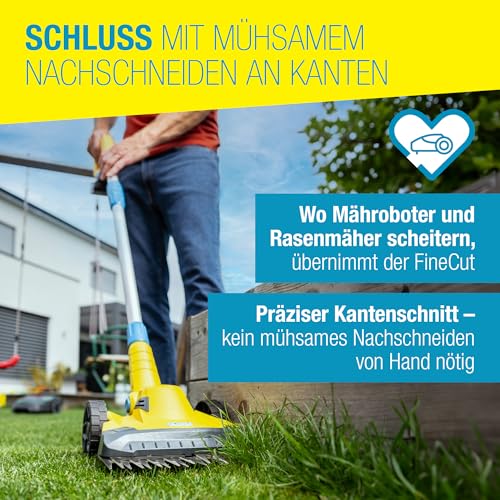 Dank seiner ergonomischen und durchdachten Bauweise ist das Gerät auch für diverse andere Einsatzgebiete im Garten geeignet. Ob unter Sträuchern, in verwinkelten Ecken oder um Kinderspielgeräte – der FineCut ist flexibel einsetzbar.