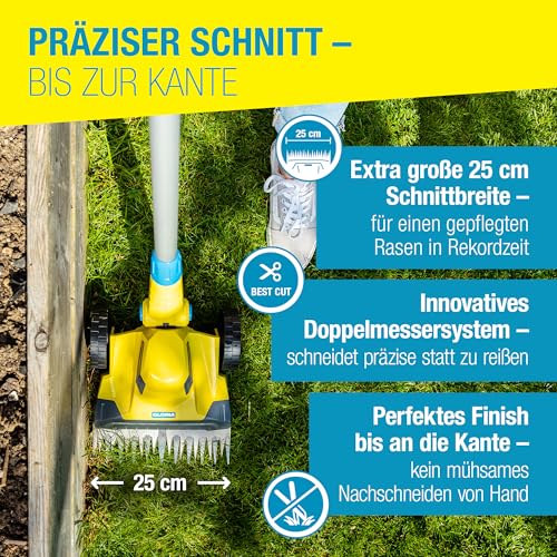 GLORIA Akku Rasen- und Kantenschneider FineCut 18V – Ergänzung für Mähroboter | Akku Rasenmäher/Rasentrimmer | 25 cm Schnittbreite | Einstellbarer Holmwinkel |Bosch 18V Power for All, ohne Akku
