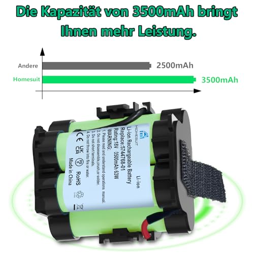 Mit 3500mAh stellt der Homesuit Akku eine beeindruckende Leistung bereit, die für längere Mähzeiten sorgt. Der Unterschied zu Standard-Akkus ist spürbar, da der Mähroboter seltener aufgeladen werden muss.