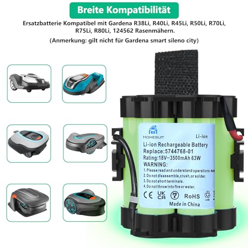 Homesuit 18V 3.5Ah Akku Kompatibel mit Gardena Mähroboter R80Li R75Li R70Li R50Li R45Li R40Li Ersatzakku für Gardena McCulloch ROB R1000 Lithium Batterie für Husqvarna Automatischer Rasenmäher 305 308
