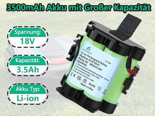 | Features | 【Perfekter Ersatzakku für Gardena Mähroboter】Der Homesuit 3.5Ah 18V Ersatzakku ist Kompatibel mit Modellen wie R80Li, R75Li, R70Li, R50Li, R45Li, R40Li, R38Li und Husqvarna Automatischer Rasenmäher 105, 305, 308, 308X, Flymo 1200R, McCulloch ROB R1000., 【HOHE KAPAZITÄT】Der Akku des Homesuit hat eine Kapazität von 3500mAh. Nennspannung: 18V, Leistungsabgabe: 63Wh. Ausreichend Leistung für mehr Einsatz. Homesuit 3.5Ah 18V Lithium-Akku bietet eine längere Betriebsdauer als herkömmliche Akkus und ermöglicht Ihrem Mähroboter, länger zu arbeiten., 【Einfach zu installieren】Homesuit 3.5Ah 18V-Ersatzakku für Gardena ist einfach zu installieren und voll kompatibel mit dem Original-Ladegerät. HINWEIS: Nachdem der Akku verbraucht ist, lassen Sie ihn bitte 10 bis 20 Minuten abkühlen, bevor Sie ihn wieder aufladen, vor allem im Hochleistungsmodus, wo der Akku heiß werden kann., 【Mehrfacher Sicherheitsschutz】Die wiederaufladbare Batterie ist RoHS FCC-zertifiziert und funktioniert wie das Original. Er kann den Akku vor Kurzschluss, Überladung, Überentladung, Überspannung, Überstrom und Überhitzung schützen. Sie können es mit gutem Gewissen nutzen, 【Was Sie erhalten】1*Ersatz für Gardena Batterie. Mit 30 Jahren Erfahrung in der Herstellung und im Verkauf weiß unser Unternehmen, dass Unfälle passieren. Wir bieten 1 Jahr Schützen und 30 Tage Rückgaberecht. Unser freundliches Kundenservice-Team wird immer glücklich sein, Ihnen zu helfen. |