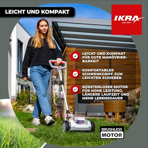 Erlebe müheloses Mähen kleiner Rasenflächen mit dem IKRA Akku Einhandmäher. Dank bürstenlosem Motor und Mulchfunktion sparst du Zeit und Dünger. Inklusive 2 Akkus, Ersatzmesser und Ladegerät für maximale Effizienz. Ideal für Flächen bis 50m².