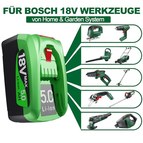 2PCS 18V 5.0Ah akku Ersatz für PBA 18V Akku Home and Garden Akku Kompatibel mit Bosch 18V Akku Geräten des Home and Garden 18V System (2 Stück)