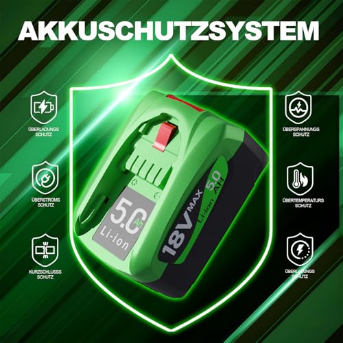 | Features | 【Leistungsstarker Akku für Bosch 18V Haus und Garten Geräte】18V 5.0Ah Akku für Bosch bietet Hervorragende Leistung und lange Lebensdauer für PBA 18V Haus und Garten Geräte., 【Doppelt Power Verfügbar】Kompatibel mit Bosch PBA 18V Geräte von Haus und Garten. Geeignet für PBA 18V Akku Rasenmäher, Akku Schrauber, Akku Rasentrimmer usw. von Haus und Garten System., 【Innovative Li-Ionen Akkuzellen】Dank der Lithium-Ionen Technologie wird geringeste Selbstentladung gebracht und ist der Memory-Effekt zu verhindern. Damit die Lebensdauer des Akkus wird besser verlängert., 【Umfassendes Schutzsystem】 Der 5,0Ah Akku für Bosch 18V Haus und Garten Geräte sorgt für eingebauten Kurzschluß-, Überladungs- und Überhitzungsschutz., 【Frei Rücksendung und Ersatzakku】Alle Akkus werden mit 60 Tagen kostenloser Rückgabe, 12 Monaten Produktservice und 24 Stunden freundlichem Kundenservice angeboten |