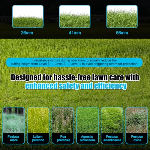 - Einstellbare Schnitthöhe von 26, 41 und 56 mm für eine optimale Rasenpflege
