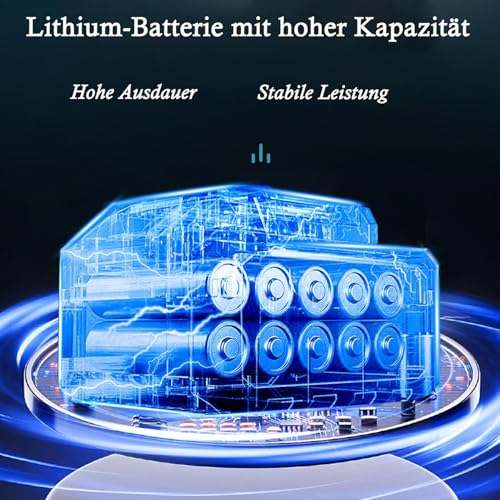 - Akkubetrieb mit zwei 4000mAh-Batterien, die jeweils bis zu 40 Minuten Laufzeit bieten und somit unterbrechungsfreies Arbeiten ermöglichen.