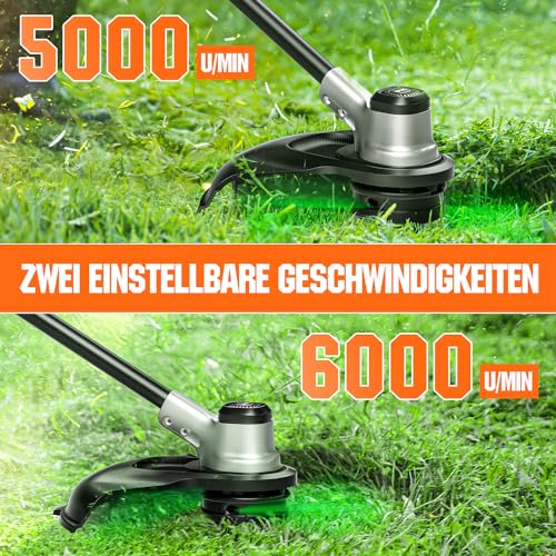 Der Litheli Akku Rasentrimmer ist mit einem bürstenlosen Motor ausgestattet, der eine beeindruckende Leistungsfähigkeit von bis zu 6.000 U/min bietet. Diese Technologie sorgt nicht nur für eine höhere Leistung, sondern auch für eine längere Lebensdauer im Vergleich zu herkömmlichen Motoren mit Bürsten.