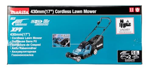 | Features | Kompatible Akkus & Ladegeräte: http://www.makita.de/product/dlm432.html, Zwei in Reihe geschaltete 18V Akkus. Die Akkus werden parallel in separate Akkuhalterungen eingeschoben, Elektronische Bremse für maximale Effizienz und Anwenderschutz, Tiefentladeschutz. Das Gerät schaltet automatisch ab, wenn der Akku fast leer ist., Ergonomisch geformter Griff mit gummiertem Softgrip bietet erhöhten Komfort, 40 l Grasfangkorb |