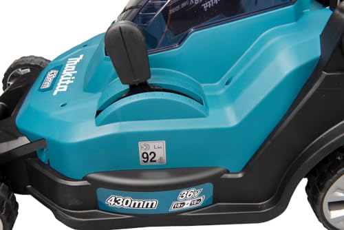 Der Makita DLM432Z besticht durch seine starke Leistung, die durch zwei in Reihe geschaltete 18V Akkus erreicht wird. Diese Konfiguration ermöglicht eine effiziente Rasenpflege, ohne die Notwendigkeit für ein störendes Netzkabel.