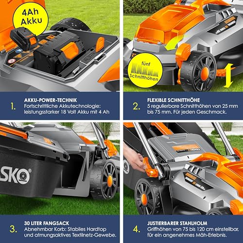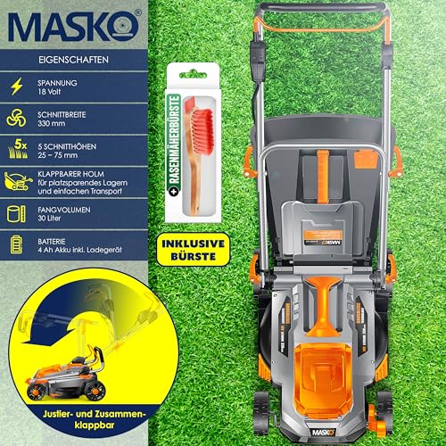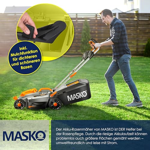 MASKO Akku Rasenmäher Mulchfunktion mit 33cm Schnittbreite und Akku-Bewertung 4Ah