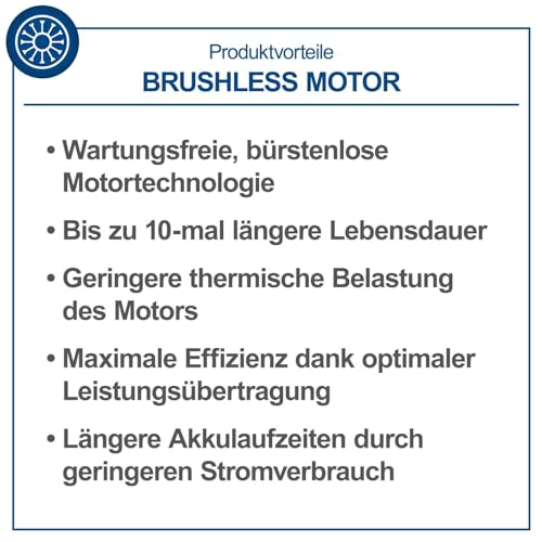 - Brushless Motor für lange Lebensdauer und hohe Effizienz