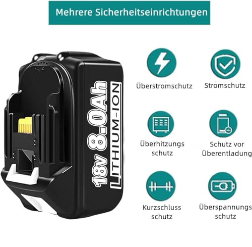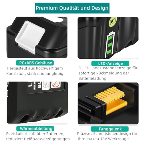 - Kompatibel mit Makita Akku-Modellen BL1870B, BL1860, BL1850 u.v.m.
