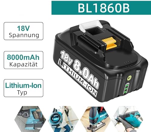 2 Stück 18V 8.0Ah / 8000mAh Ersatzakku für Makita Akku 18V BL1860 Ersatzakku für Makita Akku BL1850B BL1850 BL1840 BL1830 BL1820 BL1815 mit LED Indikator für Werkzeuge