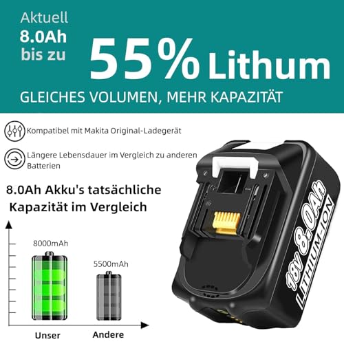 Entdecke den 18V 8.0Ah Ersatzakku für Makita-Geräte. Genieße lange Laufzeiten dank hoher Kapazität, LED-Anzeige und erweiterter Sicherheitsfunktionen. Der Akku bietet dir Zuverlässigkeit und schnelle Ladezeiten für effizientes Arbeiten – ideal für ambitionierte Heimwerker.