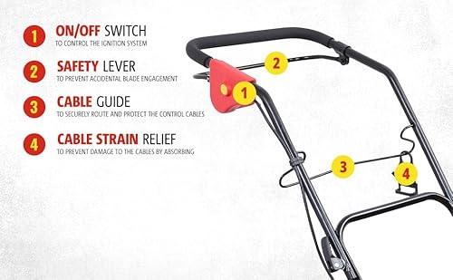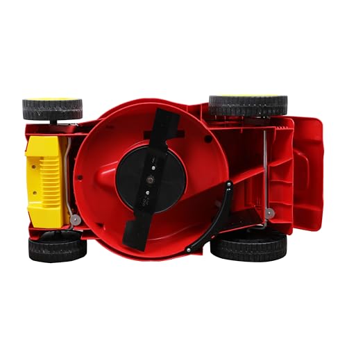 Die robuste Bauweise und die Farbkombination aus Rot und Gelb verleihen dem Mäher nicht nur ein ansprechendes Äußeres, sondern auch Langlebigkeit und Stabilität über lange Zeit hinweg.