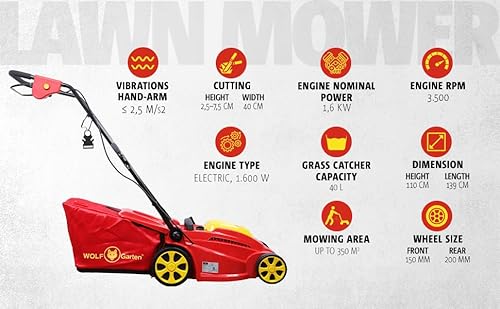 - Leistungsstarker Motor: WOLF-Garten – E-Power 1.600 Watt, 2950 U/min