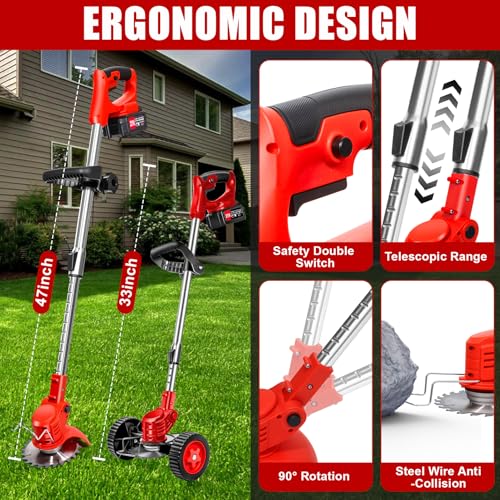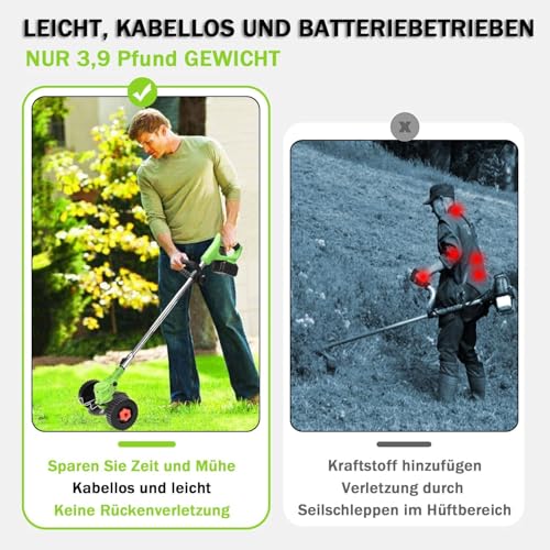 Akku-Rasentrimmer 21V Elektrischer Rasentrimmer – Rasentrimmer Mit 4.0AH Akku-Batteriebetriebener Garten-Rasen-Unkraut-Trimmer Elektro-Trimmer Gartenkantenfräser mit 3 Arten Klingen für Garten, Hof