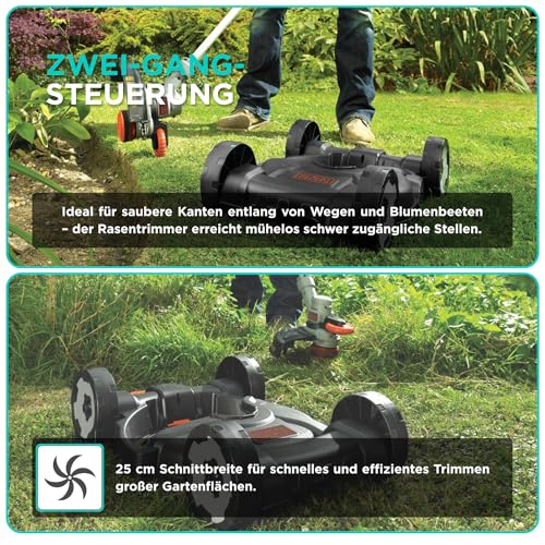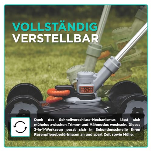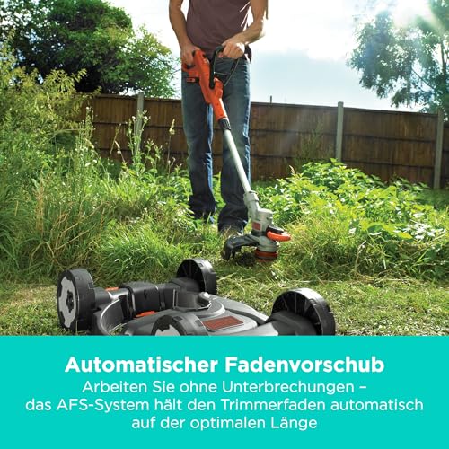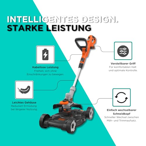 BLACK+DECKER 3-in-1 Multi-Trimmer-Set Rasentrimmer mit Akku Rasenkantenschneider (18V 2,0Ah Rasentrimmer mit Rasenmäheraufsatz, speziell für kleinste Rasenflächen und schwieriges Gelände) STC1820CM