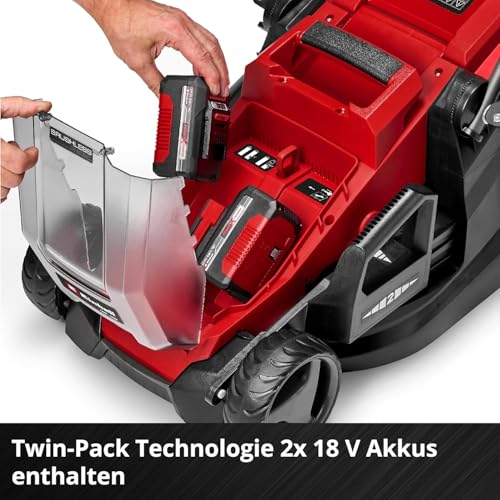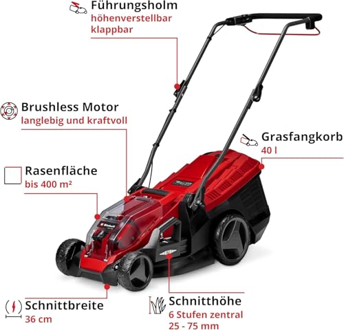 Einhell Akku-Rasenmäher GE-CM 36/36 Li Kit Power X-Change (36 V, 36 cm Schnittbreite, bis 400 m², Brushless, 40L Fangkorb, 25-75 mm Schnitthöhe, inkl. 2x 4,0 Ah Akku + 2x Ladegerät)