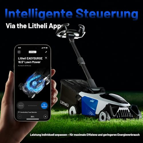 Erlebe müheloses Mähen mit dem Litheli Akku-Rasenmäher: Dank Overclocking-Technologie und bürstenlosem Motor bewältigst du selbst dichte Rasenflächen problemlos. Steuere Schnitt und Tempo bequem per App. Ideal für bis zu 500 m².