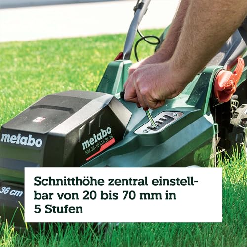 metabo Akku-Rasenmäher RM 36-18 LTX BL 36 – 601716850 – 18 V – Akkurasenmäher mit Mulchfunktion – Für Gärten mit bis zu 350 m² – Ohne Akku und Ladegerät
