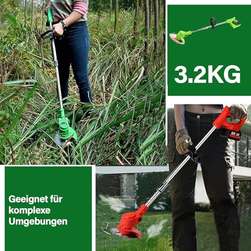 Freischneider Akku, Rasenkantenschneider, Rasentrimmer mit Akku und Motor (2 x 4.0A Akku und schnelles Ladegerät), Rasentrimmer/Mini Rasenmäher/Freischneider, mit 3 Arten Klingen für Garten, Hof